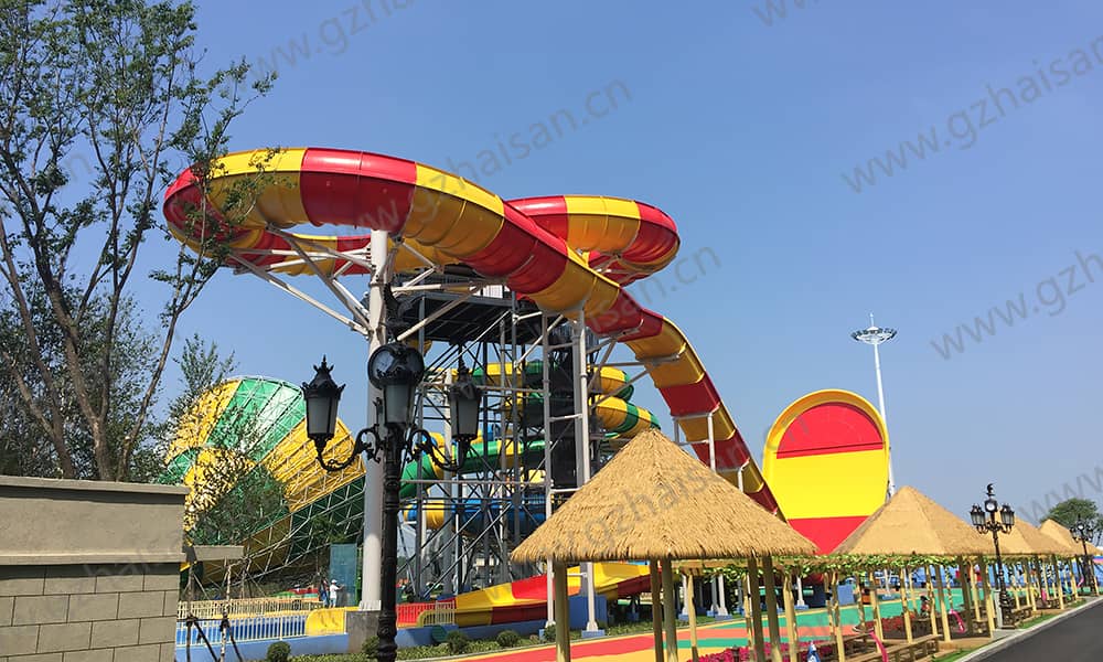 水上乐园由13项室外水上游乐设施和8项室内水上游乐设施精心打造而成,由海山游乐独家提供水上乐园设备制造安装服务。室外水乐园占地3万多平方米,分为采矿主题滑梯、伐木主题丛林穿越、方块部落、小丑造浪池等主题区;室内水乐园占地2万多平方米,分为大型儿童水寨、室内造浪池、鱼虾捕蟹池、大滑梯及小喇叭滑梯等,集惊险刺激、烧脑创意、激情畅爽于一身。开口直径达18.5米的大喇叭、每秒下落3米的竞速滑梯、入仓最高旋转达1080度的巨兽碗、浪高2米的海啸池、18.5米高的冲天回旋、多达47种功能的超大型主题水寨等国际流行的水上游乐设施将为游客带来全新的刺激体验。
