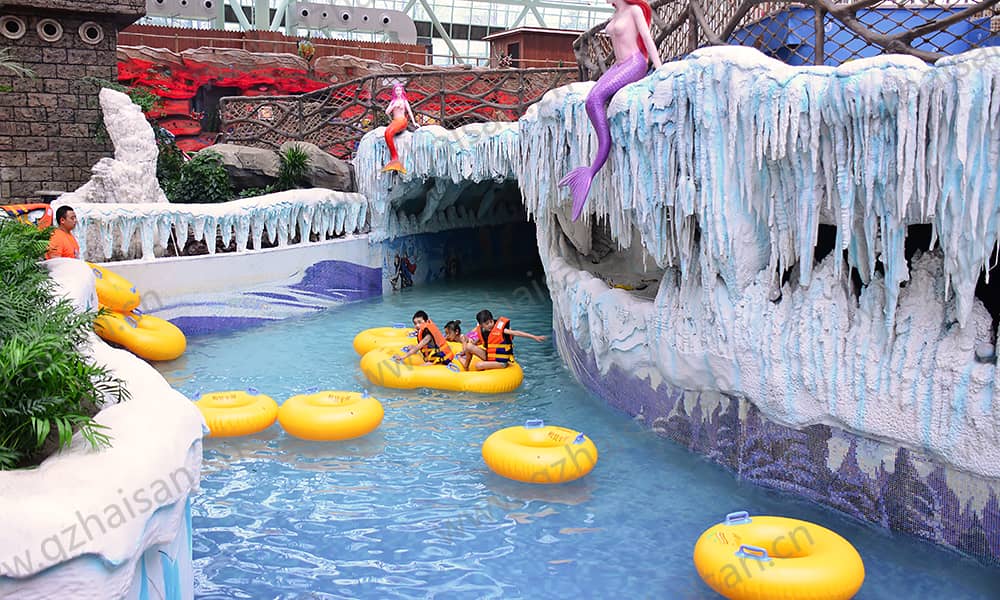 项目共分两期,其中一期包括6个室内恒温游乐场馆、一座超五星级酒店和两座SOHO办公楼。“水之王国”整个建筑高约70米,东西跨度220米,主要的水上游乐设施有:海浪池、漂流河、互动水屋(水寨)、儿童戏水设备、滑板冲浪、翻江倒海组合滑道(大碗/黑洞/时光穿梭滑道/水上过山车)。
