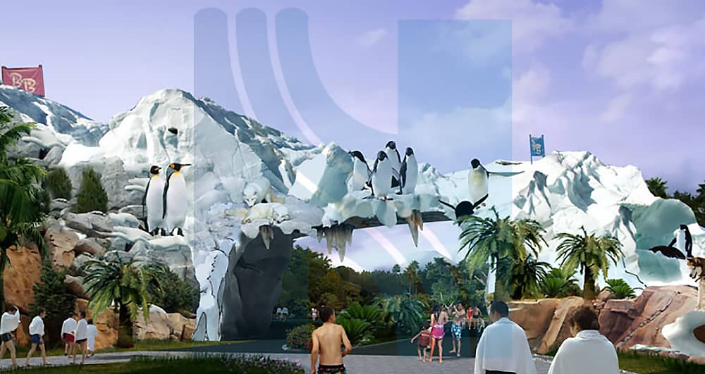 引入“极地冰山”景观,打造一个以“热带冰川”、“滨海游乐”为核心的主题旅游区。在主题设计上,通过电影冰河世纪的融入,意为游客打造一个国内独具主题性海上狂欢的水上主题乐园。水上主题乐园通过多彩的文化的包装,多种特色元素融入项目设置当中,为游客提供一个欢乐、冒险、刺激的海洋水上运动探秘世界。